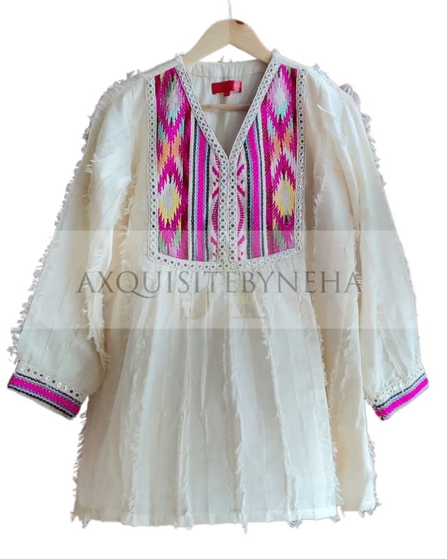 Snow White Ikat Coordinating Sets boast superior-grade cotton fabric with striking fringed accents.