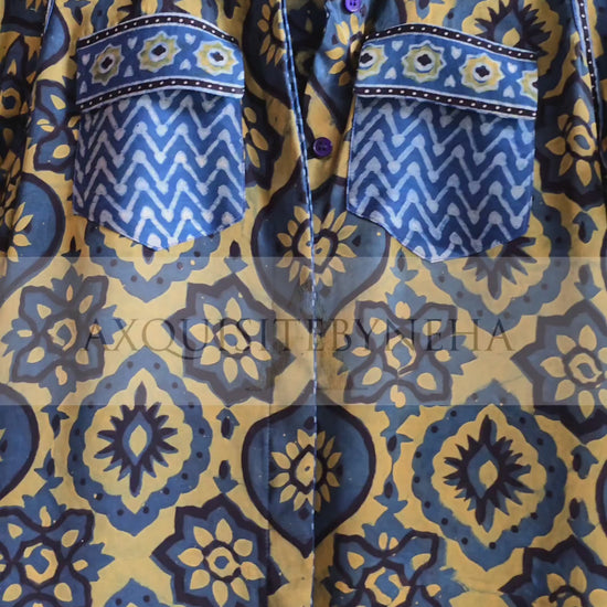 Embrace the luxurious fusion of artisanal and contemporary fashion with our Ajrak ensemble. Handcrafted on the finest Modal Satin fabric, this intricate print exudes sophistication. Pair it with our smartly detailed denim pants for a tasteful touch. Elevate your style with this exclusive statement piece.