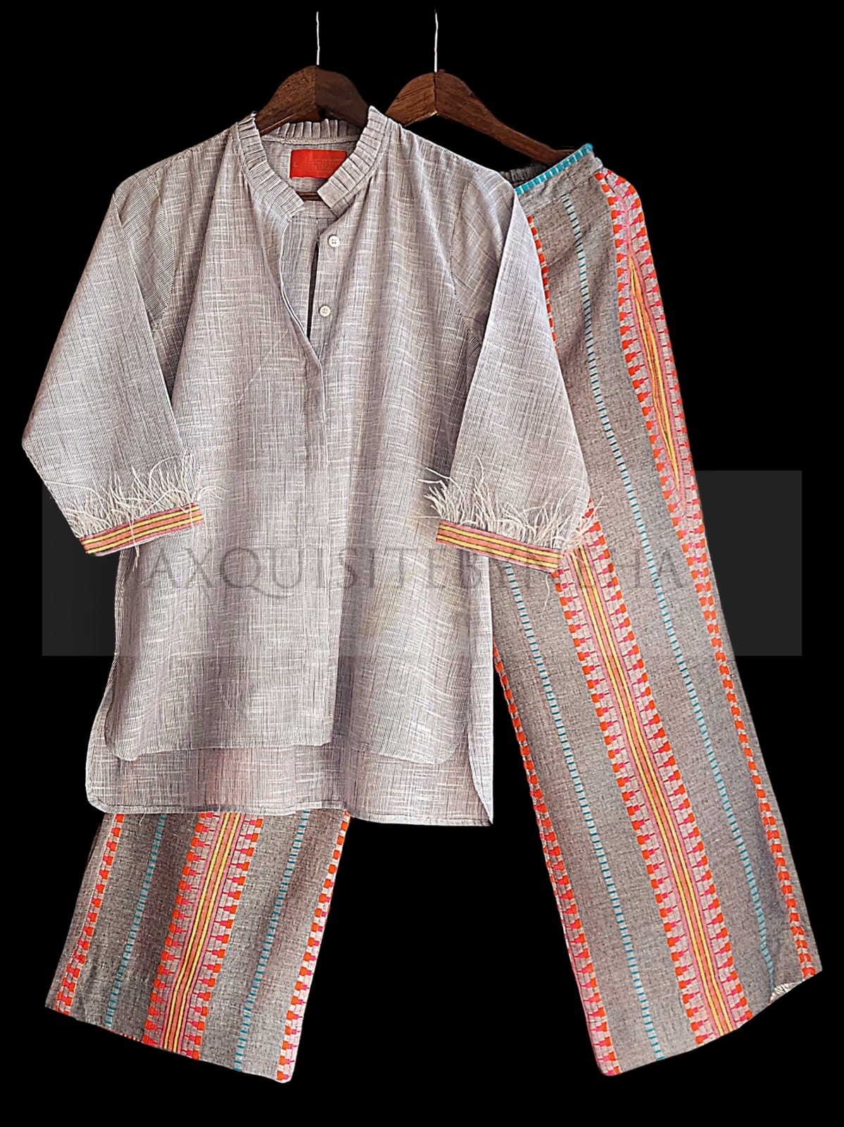 Step into smart-meets-quirky style with our Chambray fabric co-ord with Stripes Pants! Crafted with lightweight chambray and jacquard fabric and feather detailing, each pair will have you looking sharp and feeling comfortable all day long. Get ready to strut your stuff, sailor!