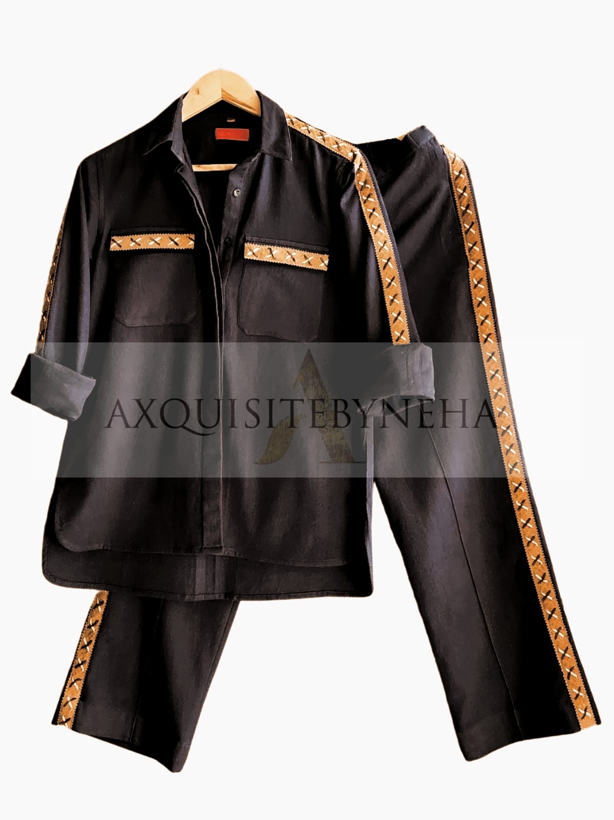 A sophisticated cotton-linen blend set #coordsets, complete with suede shoulder work, creates a stunning, delicate look.
