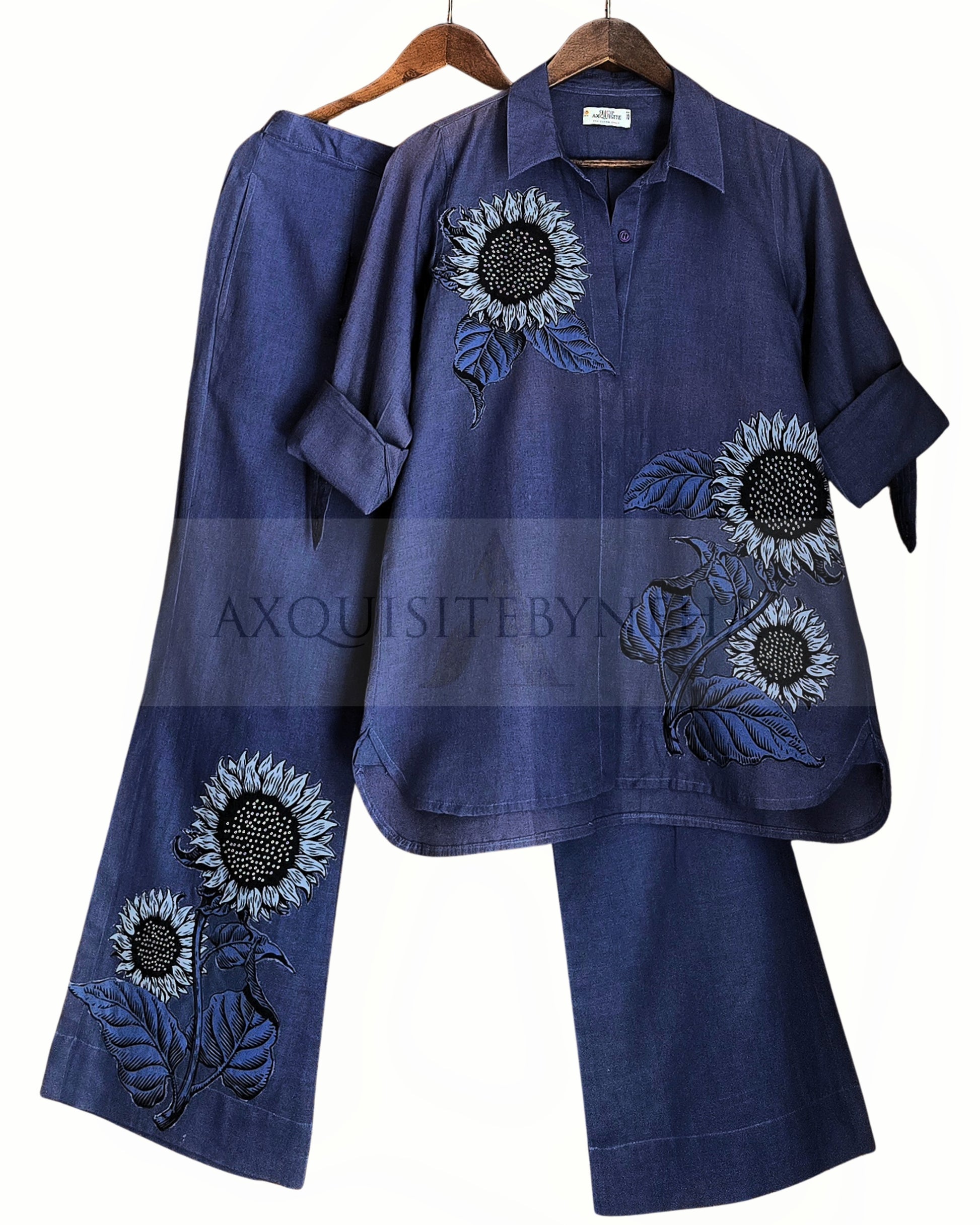 This Denim Love 💙 coordinate set is perfect for summers, thanks to its comfy cotton fabric and intricate applique work. The denim blue color adds a touch of style, making it a must-have for any fashion-forward wardrobe. Elevate your summer style with Denim Love.