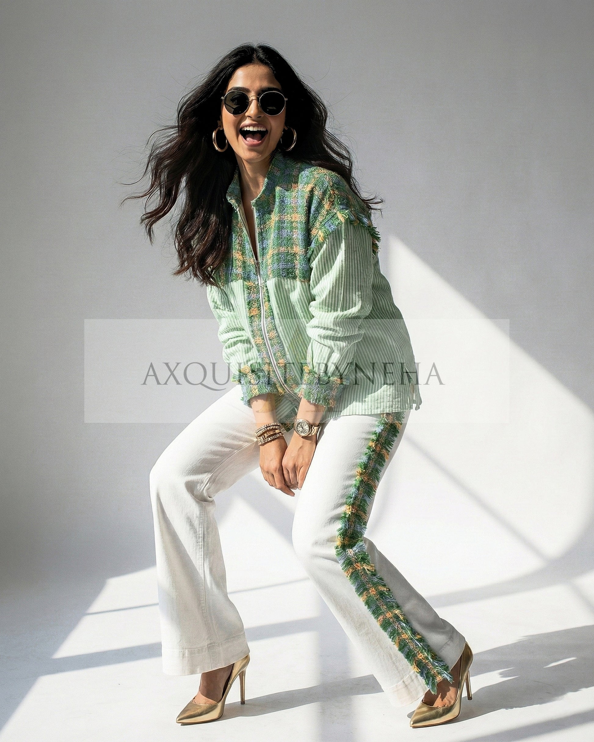 Effortlessly elevate your style with our Green and White tweed shirt jacket. Made with high-quality materials and a classic color combination, this jacket adds a touch of sophistication to any outfit. Perfect for both casual and formal occasions, it's a versatile and timeless addition to your wardrobe.
