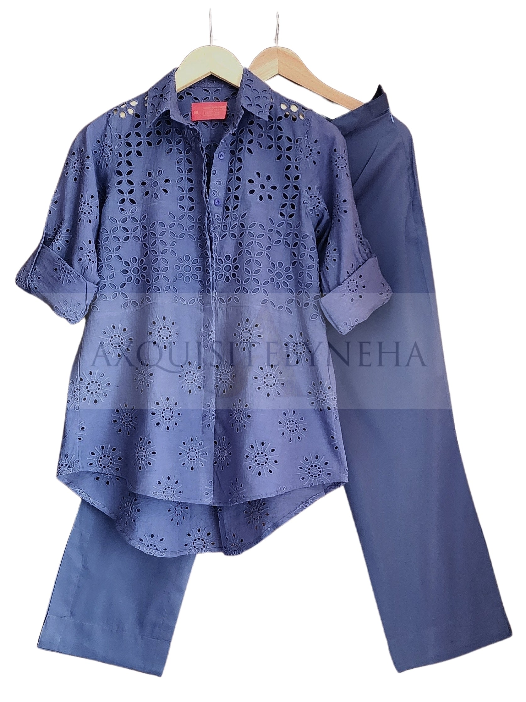 Upgrade your wardrobe with Modern Blue, a high-quality coordset made of soft cotton fabric. This blue colour adds a stylish touch to any outfit, making it perfect for any occasion. Elevate your style game with this must-have piece.