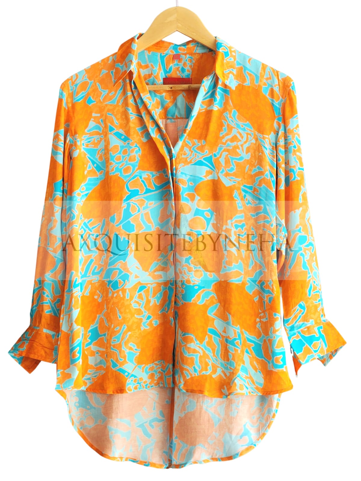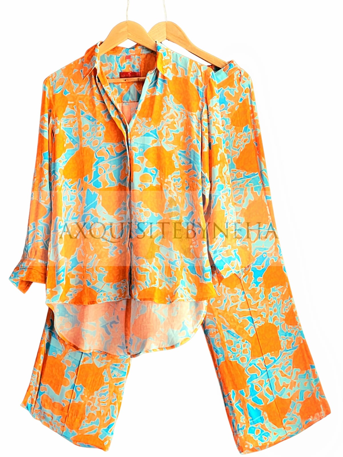 Outstanding Orange is created with precision from a selection of textures and materials and features a hint of turquoise on modal satin. Sizes available for all!
