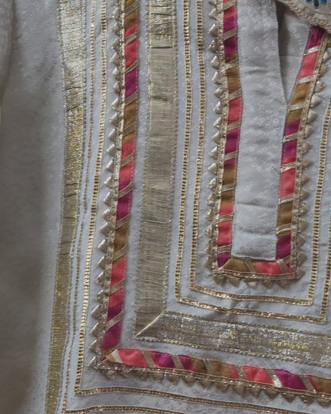 Indulge in the luxurious feel of our Tissue Georgette. With delicate embroidery work on a light golden color, this fabric exudes sophistication and exclusivity. Elevate your wardrobe with this premium material and make a statement wherever you go. Truly a work of art.