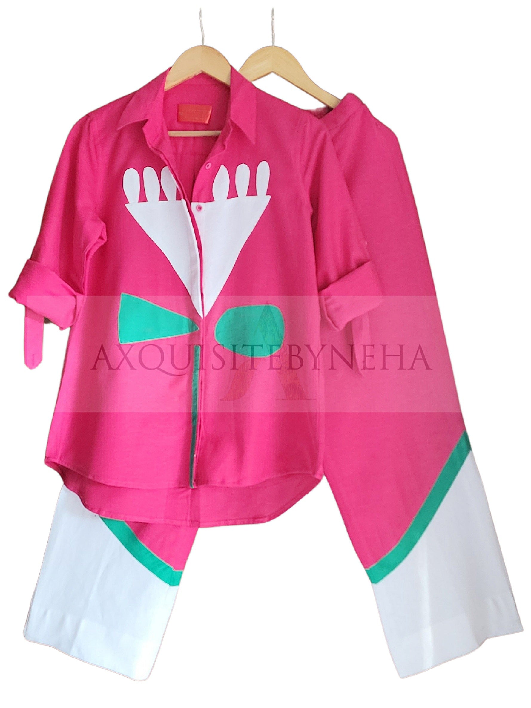 "Expertly crafted from a blend of cotton and linen, our Colour Block sets feature a stunning combination of HotPink, Yellow, and White. Available in all sizes, these sets provide both comfort and style. Elevate your wardrobe with this versatile and sleek look."