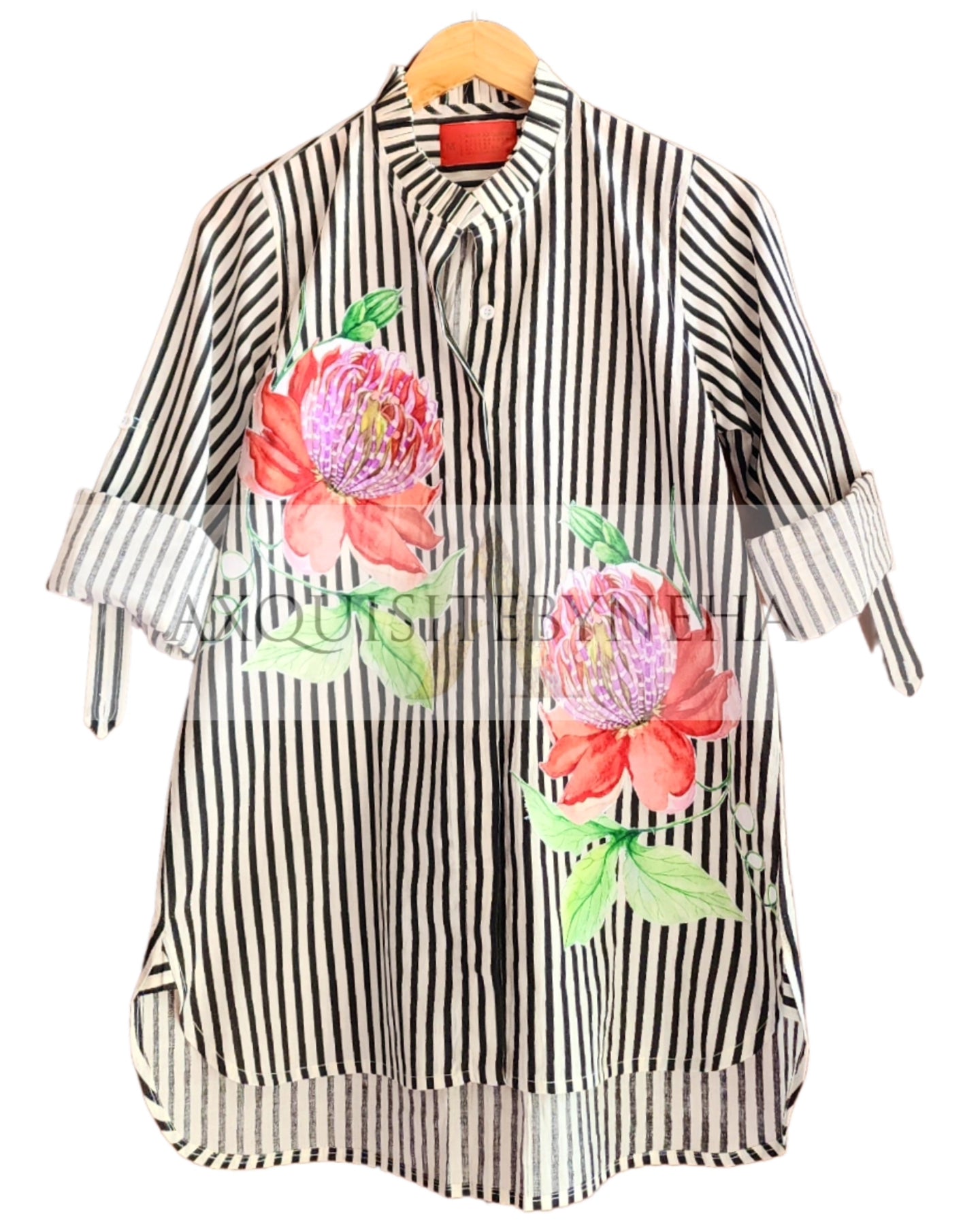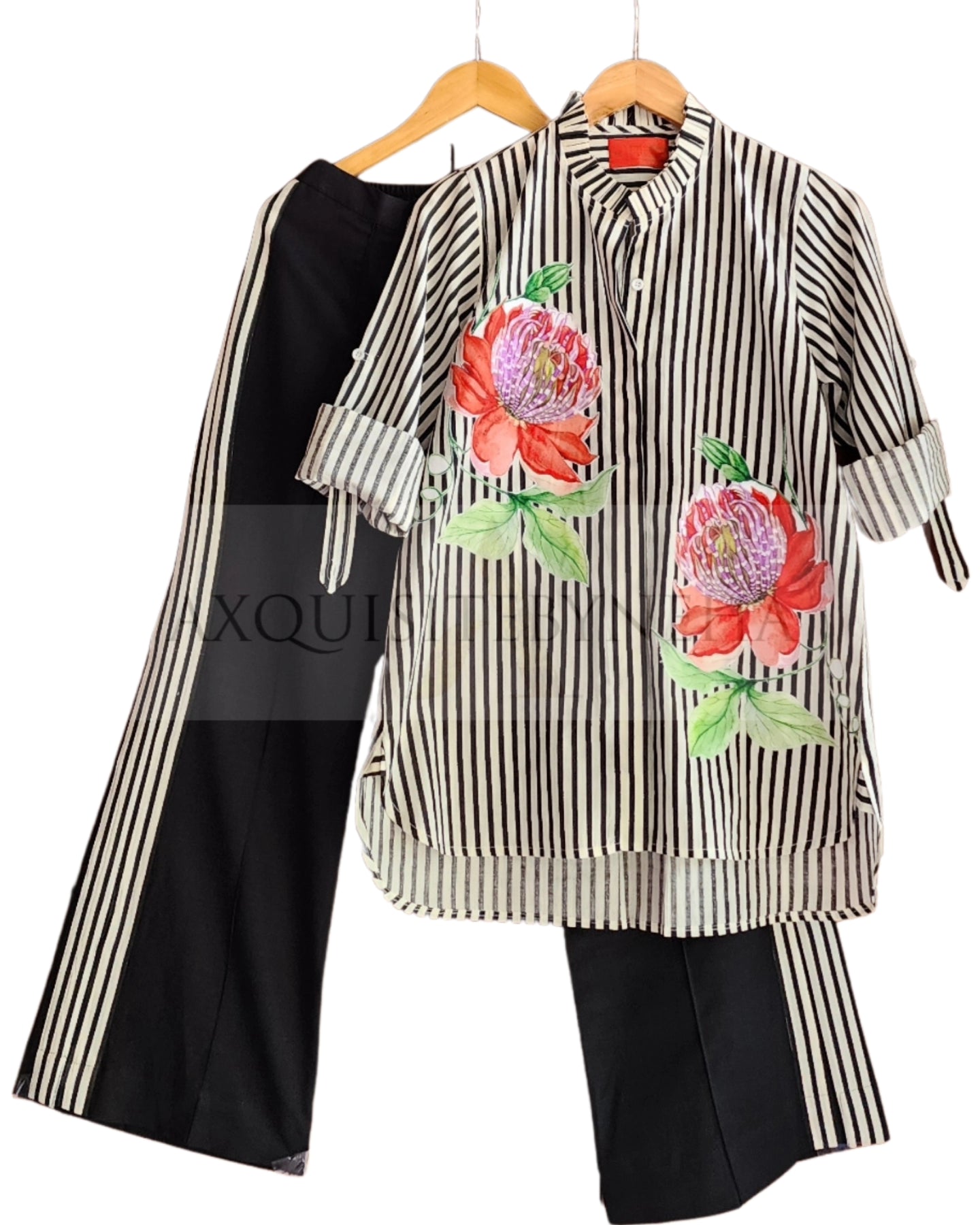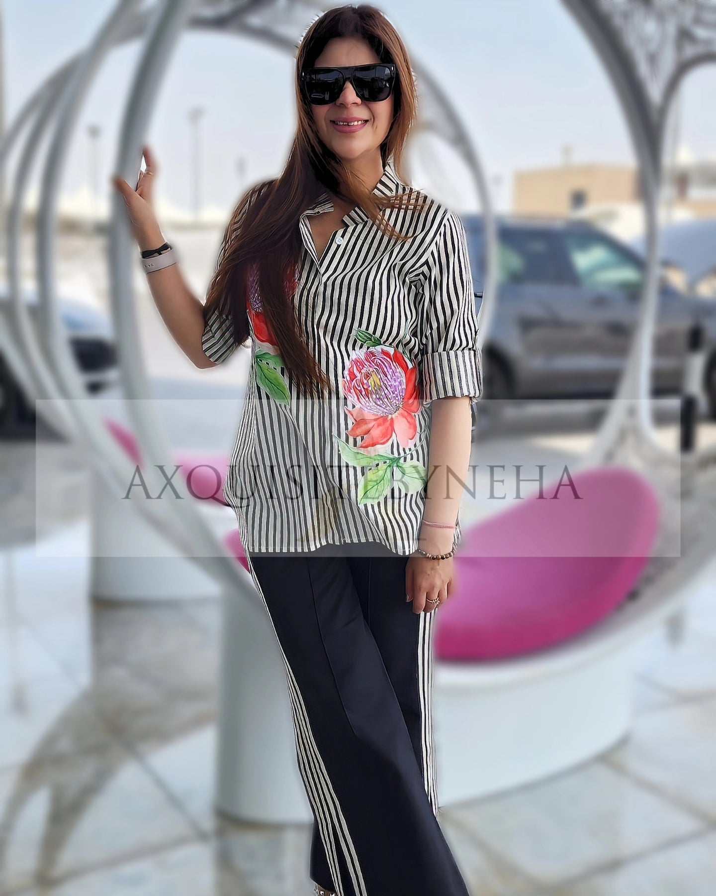 Experience sophistication with our White and Black Stripes collection. Made from luxurious cotton, our co-ord sets exude elegance and style. Perfect for any occasion, these smart co-ord sets will elevate your wardrobe and make a statement. Embrace the world of art and fashion with our White and Black Stripes.